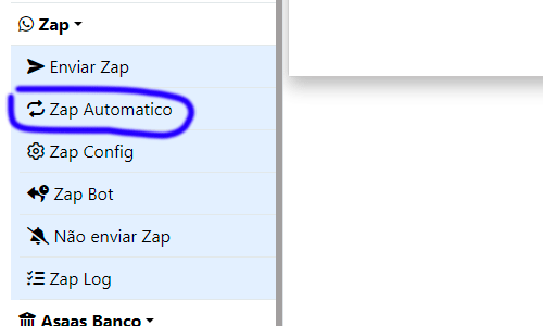 No menu clicar em Zap depois Zap Automatico para configurar o envio automático.
