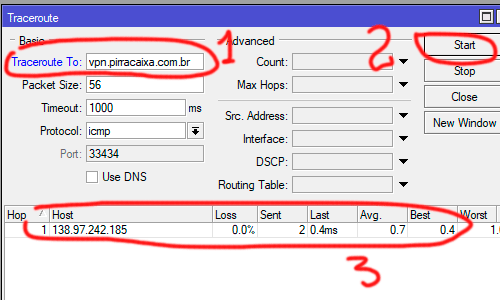 tools depois traceroute em Traceroute to: digite vpn.pirracaixa.com.br
