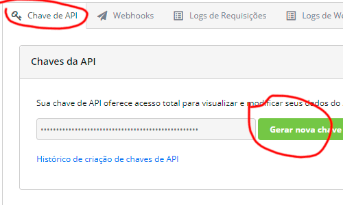 Em chave de api clicar em gerar nova chave depois clicar em copiar.