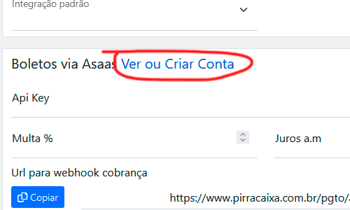 No sistema pirra caixa em home clicar em banco asaas depois integração