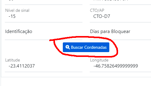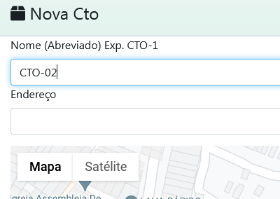 Clicar em buscar coordenadas, caso tenha as coordenadas e o nome da CTO pode apenas colocá-los nos campos e salvar.
