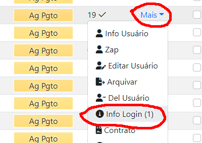 Ligando os Clientes: Escolha um cliente, pode pesquisar pelo nome depois clicar em mais depois info login,
