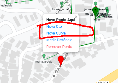 No mapa procure pelo local onde quer o ponto de uma CTO ou uma CURVA na linha, pode pesquisar pelo endereço também.