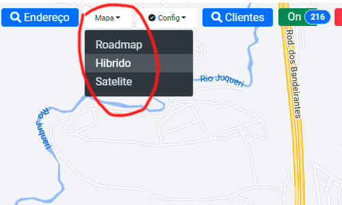 Clicando em mapa você pode alterar a aparência do seu mapa.