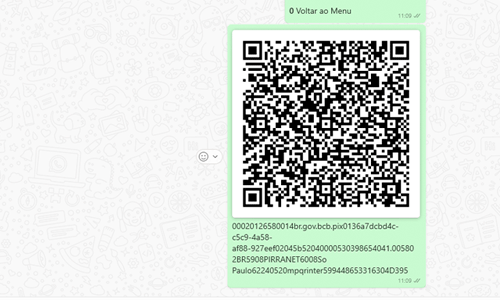 Na foto a seguir o cliente digitou 1 da página inicio.
