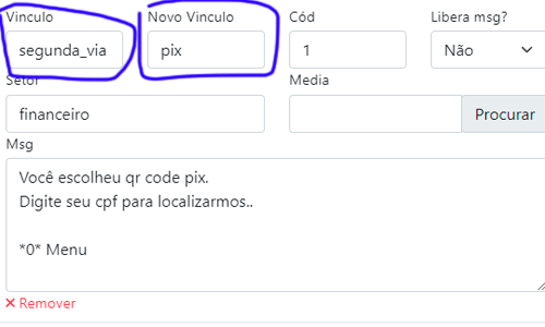 Campo "Novo Vinculo" é para proxima pagina que o cliente digitar o numero.