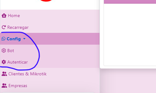 Primeiro passo é autenticar seu zap, clicar em Config depois Autenticar clicar para gerar o qr code, e em seu zap vai em configurações aparelhos conectados e leia o qr code que irá aparecer na tela.